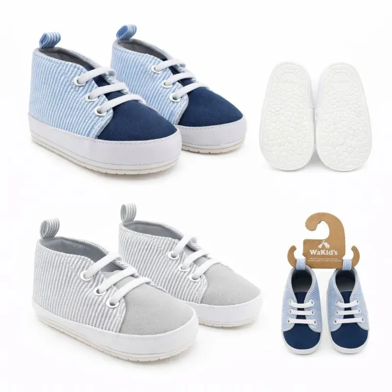 Zapaticos Rayados para Bebé Azul/Gris