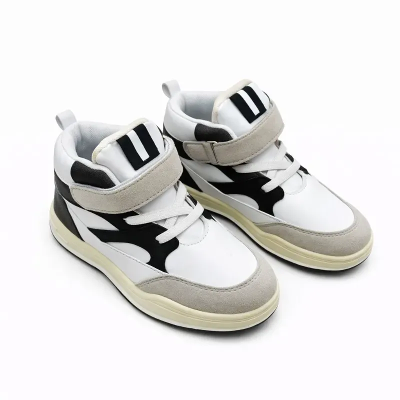 Tenis Corte Alto Blancos con Detalles Negro y Gris