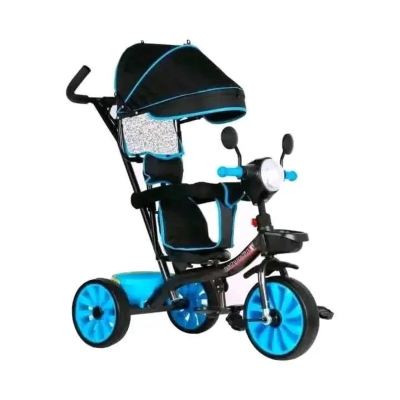 Triciclo con Manija y Capa Color Negro/Azul