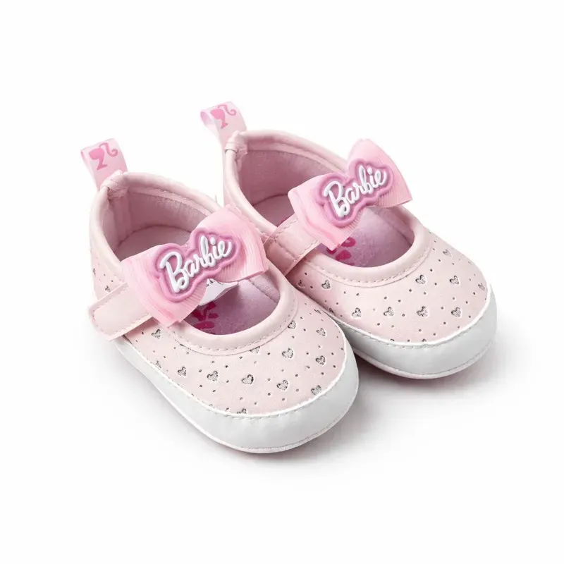 Zapatos Barbie Rosados con Moño y Corazones para Bebé