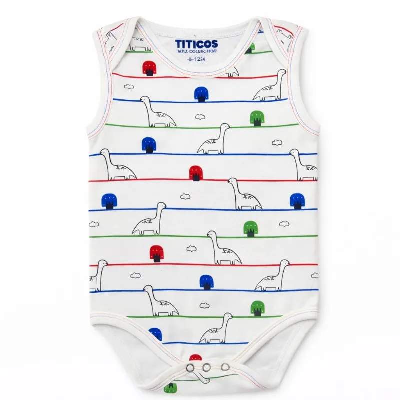 Body Blanco con Rayas y Dinosaurios para Bebé