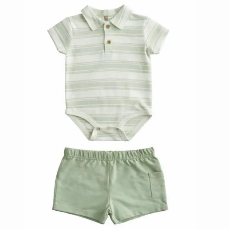 Conjunto Beige y Verde con Body Rayas y Short para Bebé
