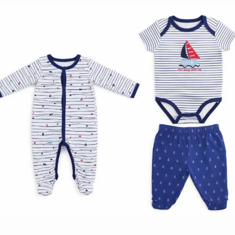 Conjunto Blanco y Azul con Body de Rayas y Pantalón Anclas para Bebé