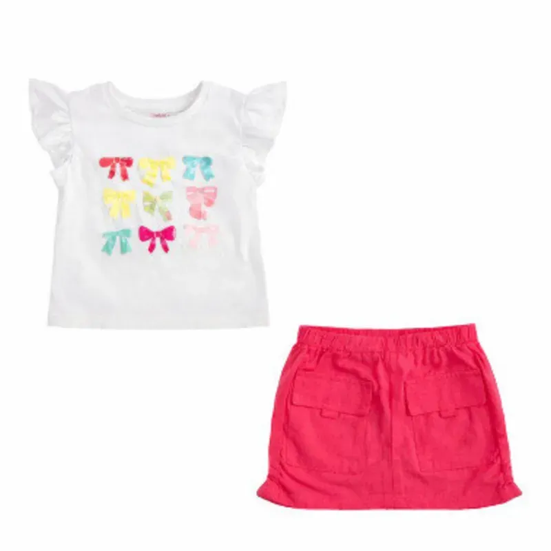 Conjunto Blanco y Fucsia de Pullover con Lazos y Saya