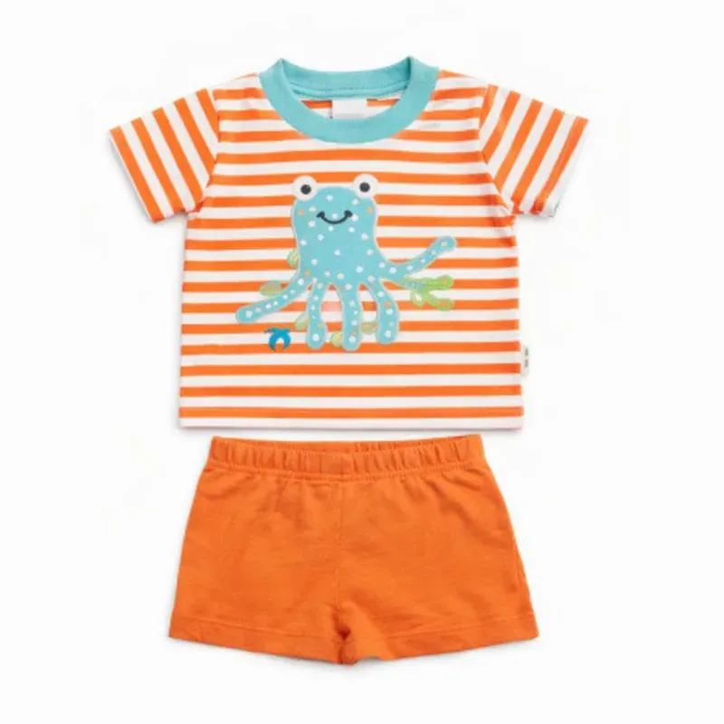 Conjunto Blanco y Naranja con Pullover de Rayas y Short