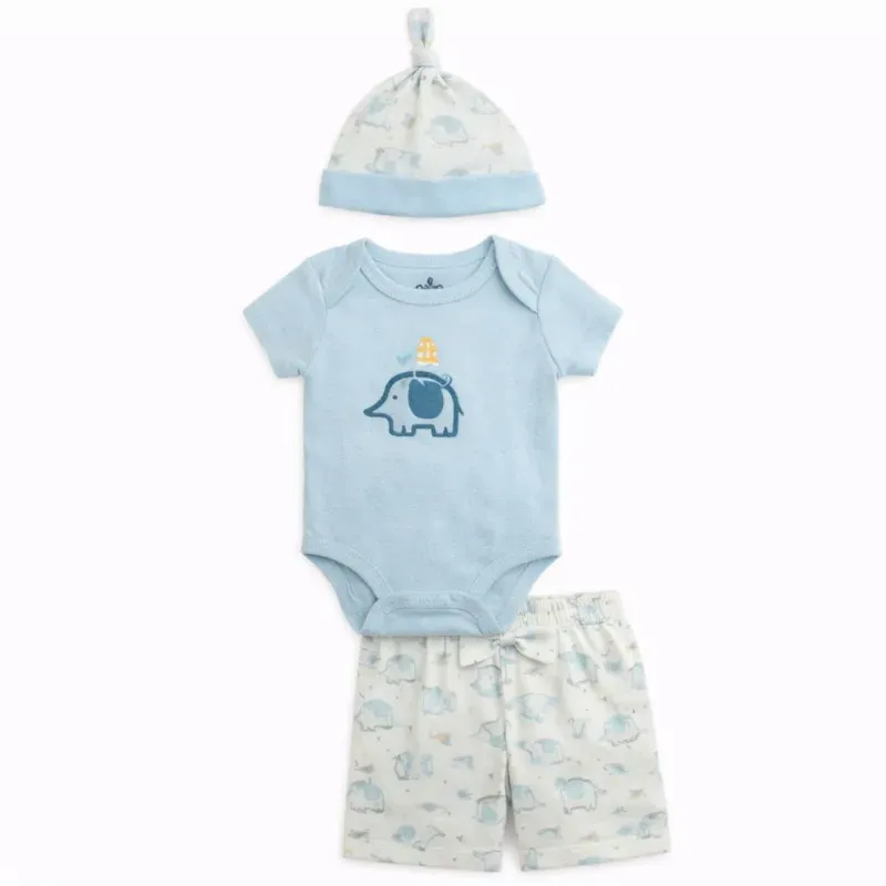 Conjunto Celeste y Blanco con Body y Gorro Elefante para Bebé