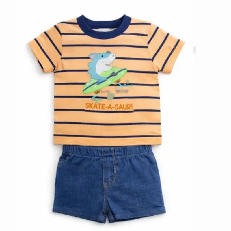 Conjunto de Pullover Rayado con Tiburón y Short Azul