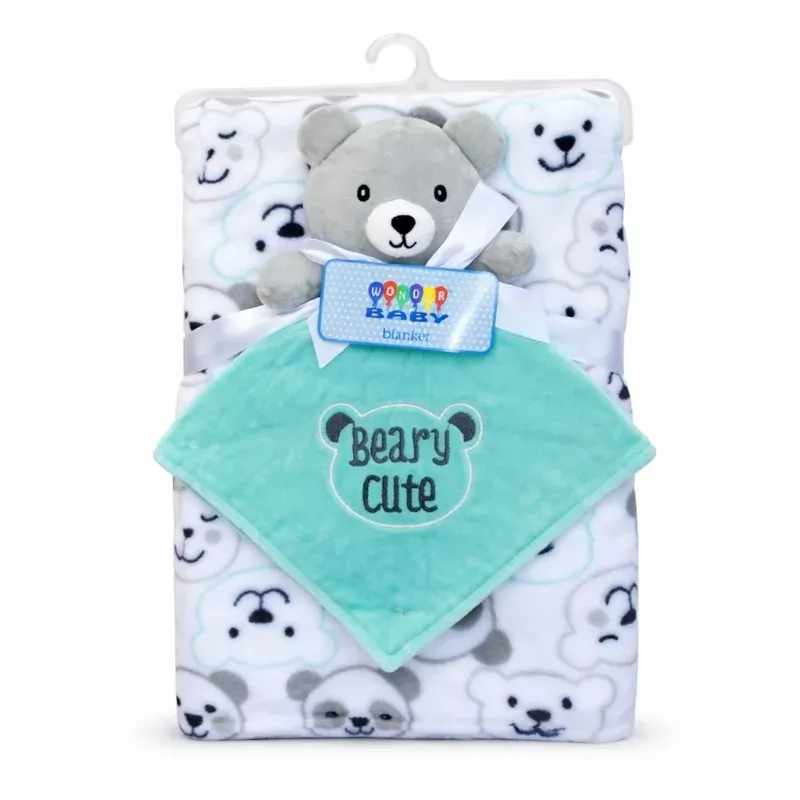 Conjunto de Manta Blanca con Panda y Osito Verde para Bebé