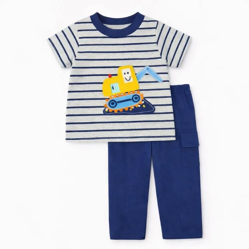 Conjunto Gris y Azul con Pullover de Excavadora y Pantalón