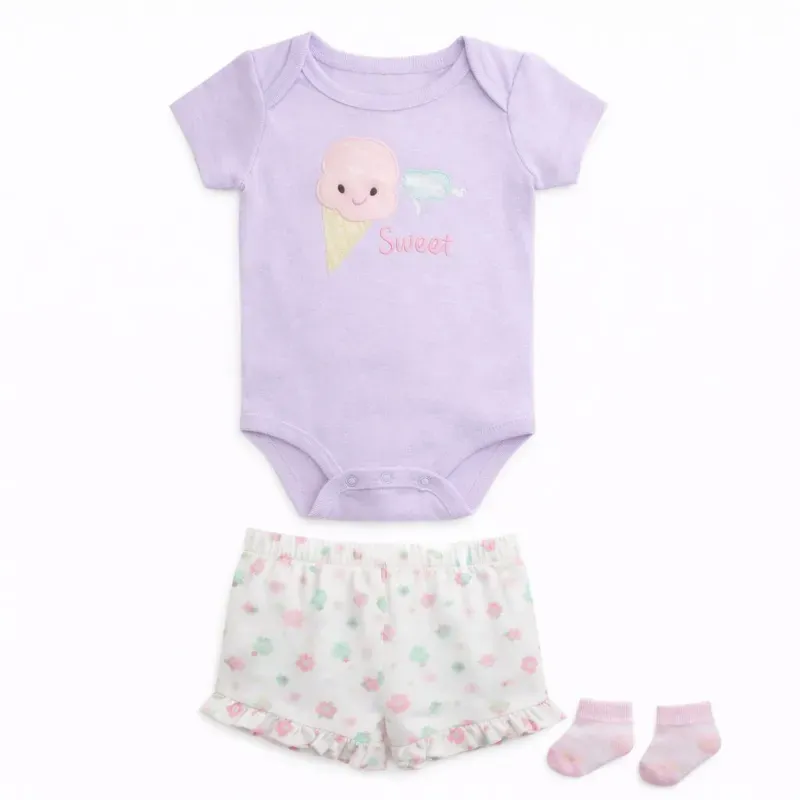 Conjunto Lavanda y Rosa con Body y Pantalón de Helados para Bebé