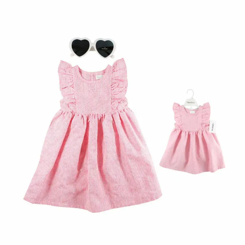 Vestido Rosado con Rayas y Gafas para Bebé