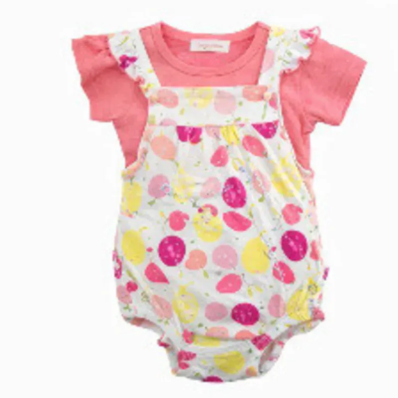 Conjunto Rosa y Multicolor con Playera y Romper de Frutas para Bebé
