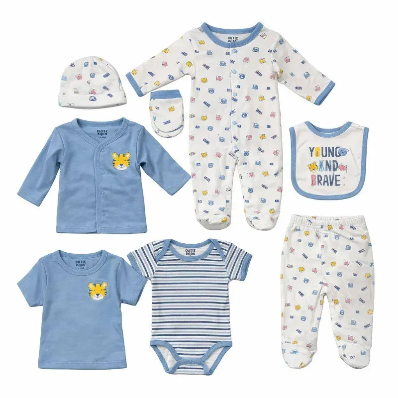 Conjunto Azul y Blanco de Pullover, Body, Abrigo, Pantalón, Enterizos y Accesorios para Bebé