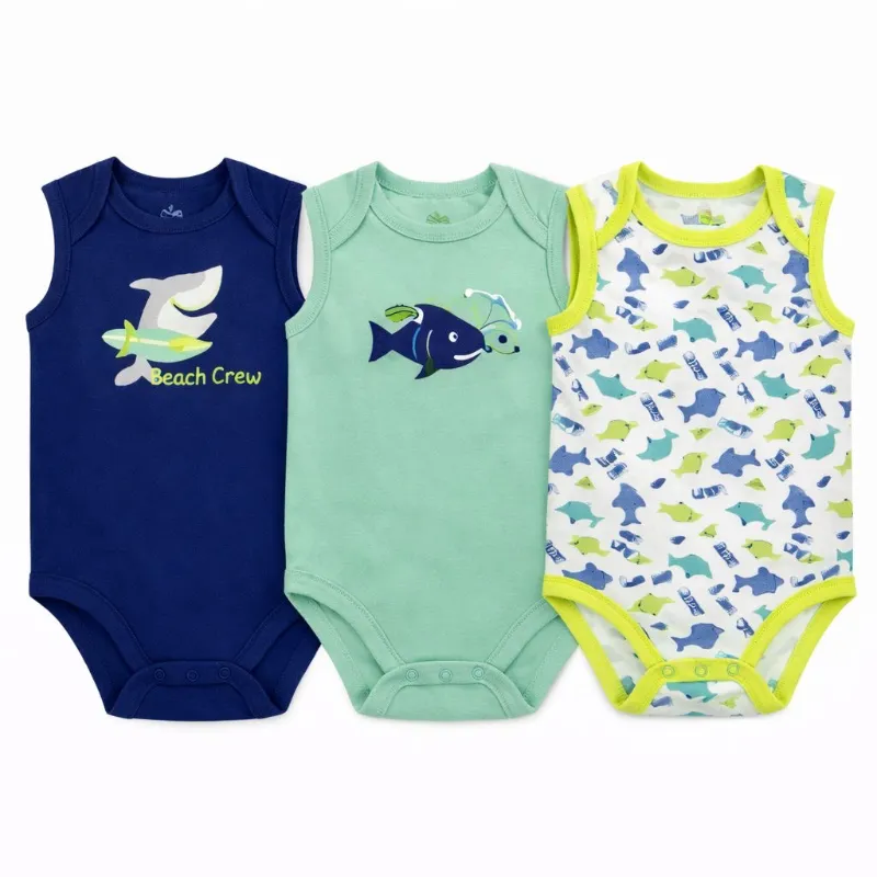 Set de Bodys Azul, Celeste y Verde con Estampado de Tiburón para Bebé