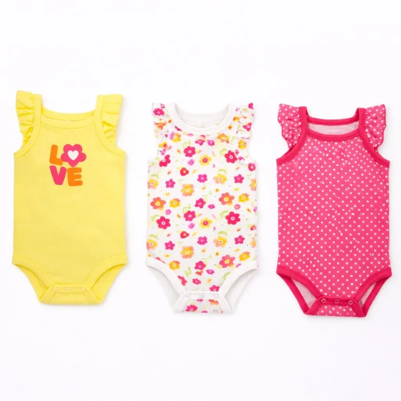 Set de Bodys Amarillo, Blanco y Rosa con Flores para Bebé