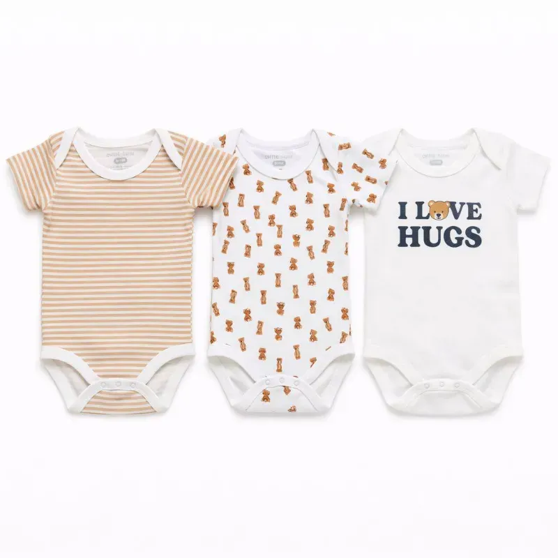 Set de Bodys Blancos, de Ositos y Rayas para Bebé