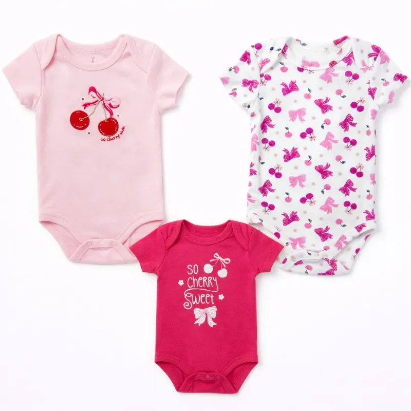 Set de Bodys Rosa, Fucsia y Blanco con Diseño de Cerezas para Bebé