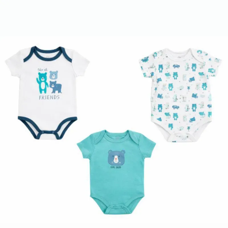 Set de Bodys Verde, Beige y Blanco con Osito para Bebé