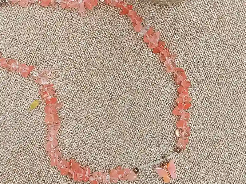 Piedras chips de cuarzo melón Mostacillas de perlas Dije de mariposa esmaltado