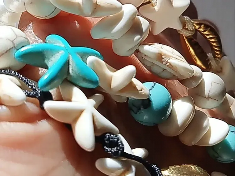 Pulseras Cauri hechas de caracoles naturales, estrellas y tortugas de nácar, piedras turquesa y Howlita