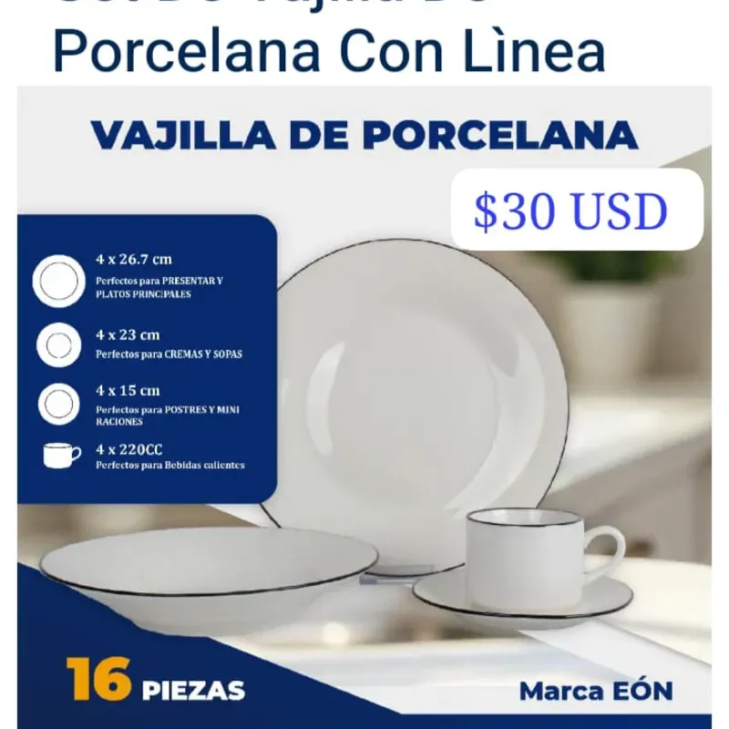 Vajilla de porcelana EON 16 piezas con lineas factura y mensajería con costo