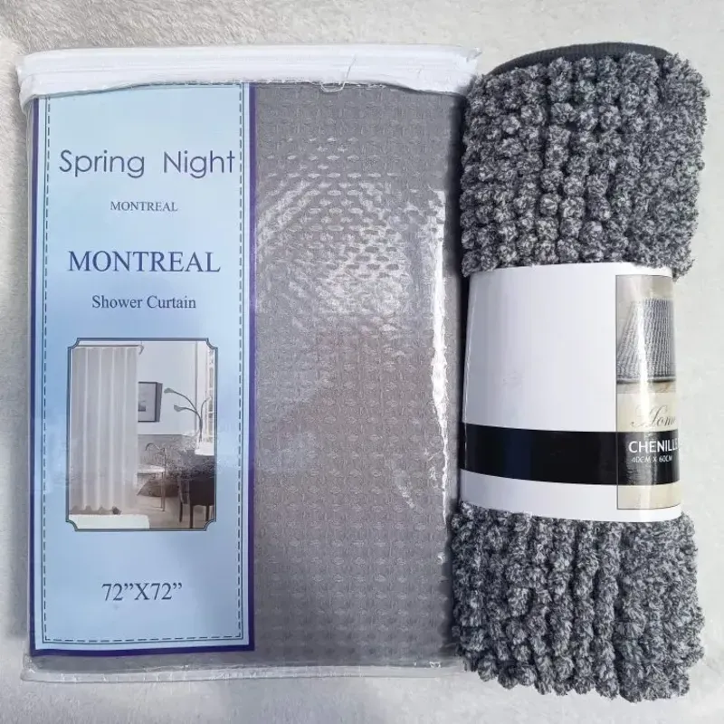 Combo Baño Confort & Estilo – Cortina + Alfombra