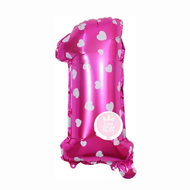 #1 rosado con corazones de 16"