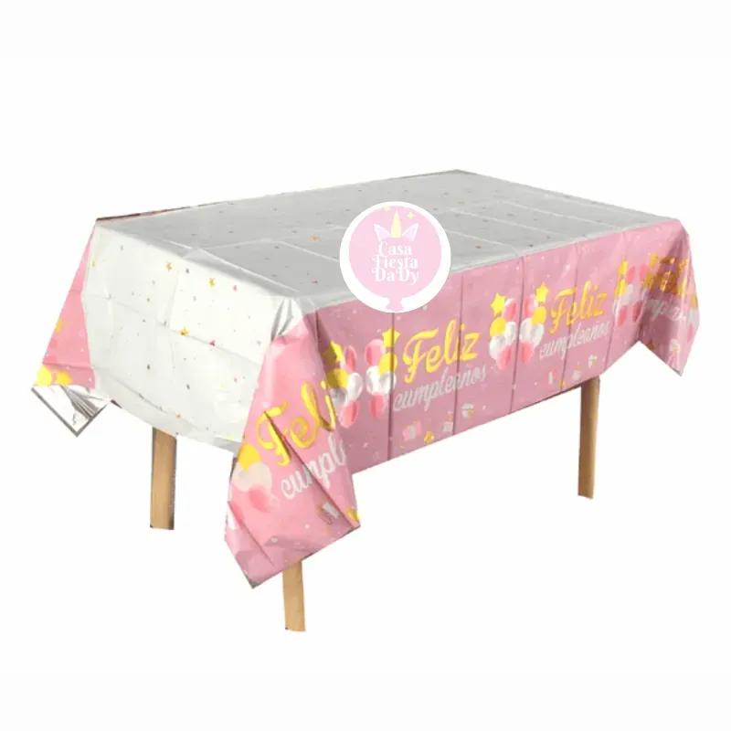 Mantel cromado rosado con feliz cumpleaños