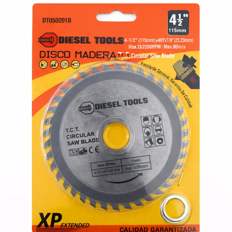 Disco circular Diesel Tools para corte de madera, fabricado con dientes de carburo de tungsteno (T.C.T.) que ofrecen mayor precisión, durabilidad y un corte limpio. Ideal para trabajos de carpintería, remodelación y construcción.