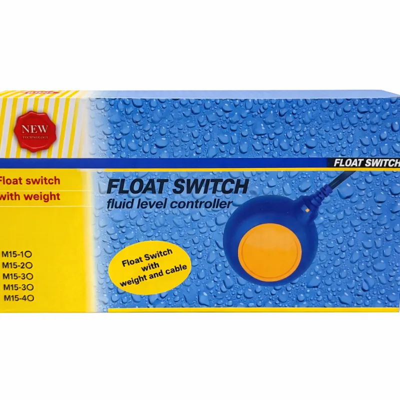 Interruptor flotante para control de nivel de líquidos, ideal para tanques, cisternas y depósitos de agua. Diseñado con peso incorporado y cable, permite un funcionamiento automático y confiable, encendiendo o apagando bombas según el nivel del líquido.
