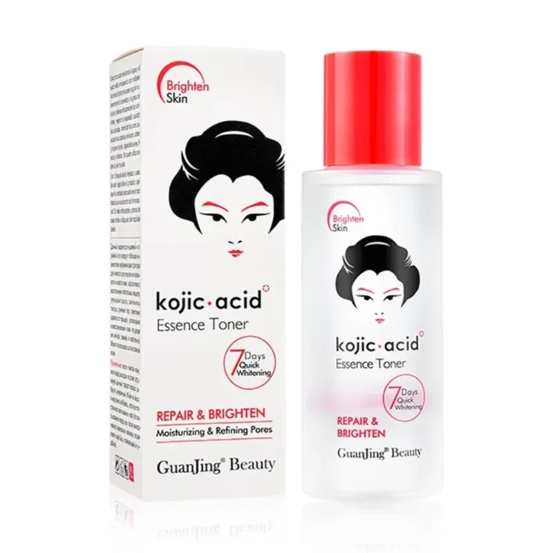 Tóner de Esencia de Ácido Kójico de la marca GuanJing Beauty. Es un paso intermedio en la rutina de cuidado facial, diseñado principalmente para unificar el tono de la piel y tratar manchas.
