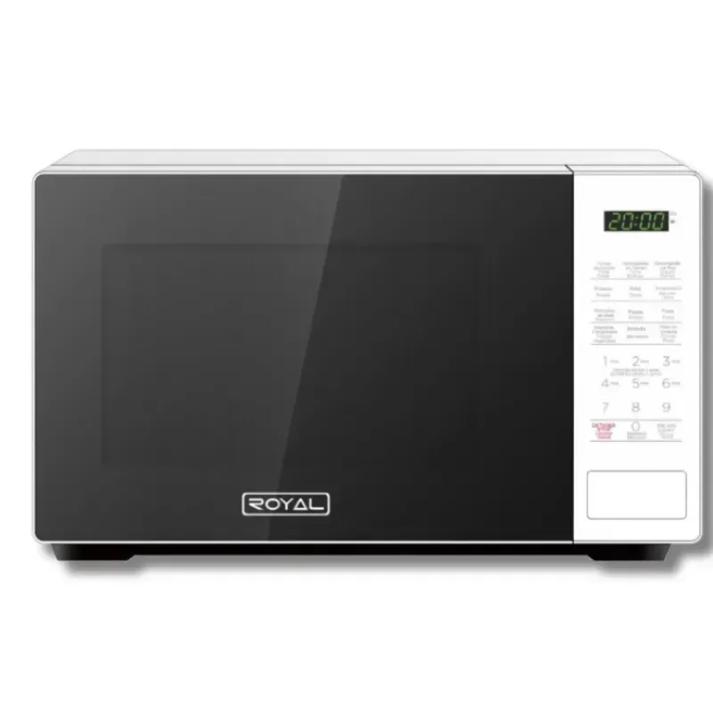ROYAL| MICROONDAS ROYAL DE 20 LITROS cuenta con una pantalla LED descongelación por tiempo y peso temporizador de cocina y reloj 11 niveles de potencia y 6 botones de menú para configuración rápida. Con una cocción rápida de 30 segundos y una potencia de 700 vatios es eficiente y fácil de usar.