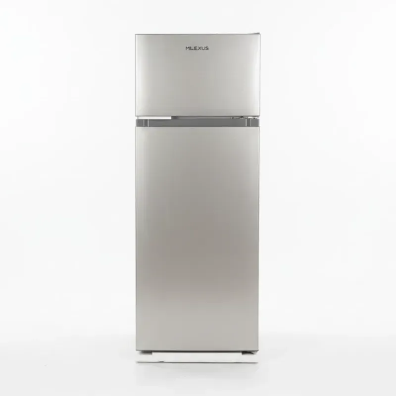 MILEXUS| REFRIGERADOR MILEXUS DE 7 PIES³ de dos puertas diseñado para ofrecer un balance entre tamaño y capacidad. Su estilo moderno en acero inoxidable y acabado en color plata lo convierte en una opción estética y funcional para cocinas pequeñas o apartamentos.