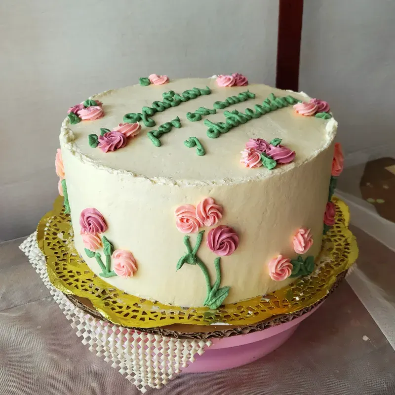 Bizcocho húmedo de vainilla o chocolate con decoración en crema de mantequilla.