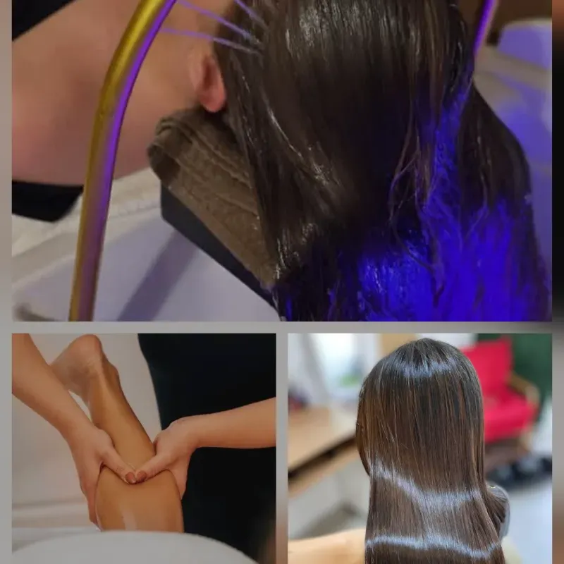 Un viaje de relajación profunda que inicia con un exclusivo ritual japonés de lavacabezas, seguido de un masaje simultáneo para piernas cansadas y finaliza con un peinado que realza su belleza natural.