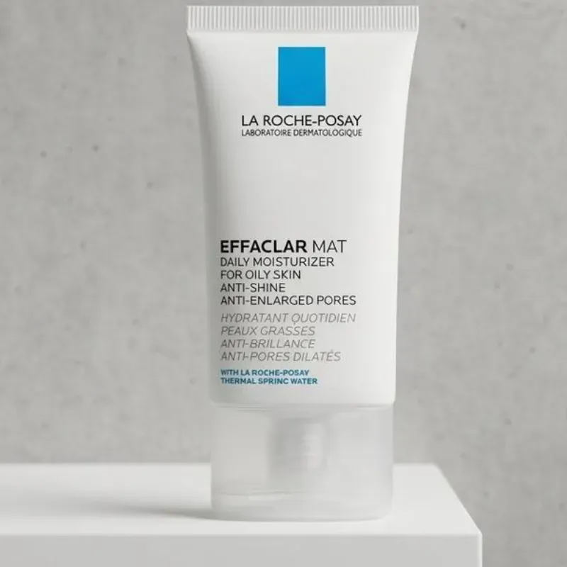 La Roche-Posay Effaclar Mat, hidratante diario para pieles grasas, reduce visiblemente el aspecto de los poros, hidratante matificante sin aceite que suaviza la textura de la piel.