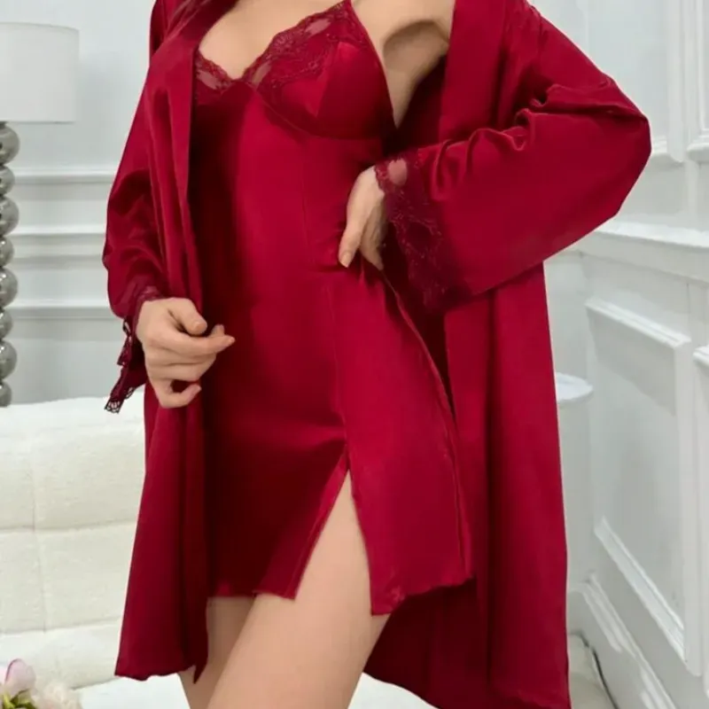 Set de vestido con bata de satín rojo