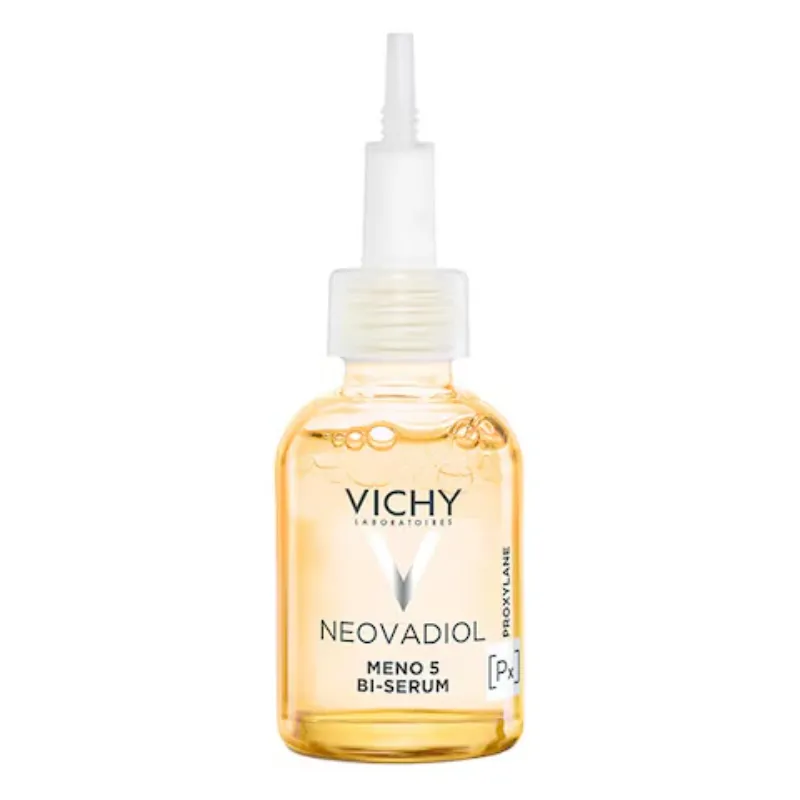 Neovadiol Meno 5 Serum está impulsado por una sinergia de ingredientes, incluyendo proxilano, extracto de casia, vitaminas B3-C-E, omegas 6-9 y agua volcánica de Vichy. Esta formulación ayuda a reponer la piel y revela una tez radiante y de aspecto uniforme.