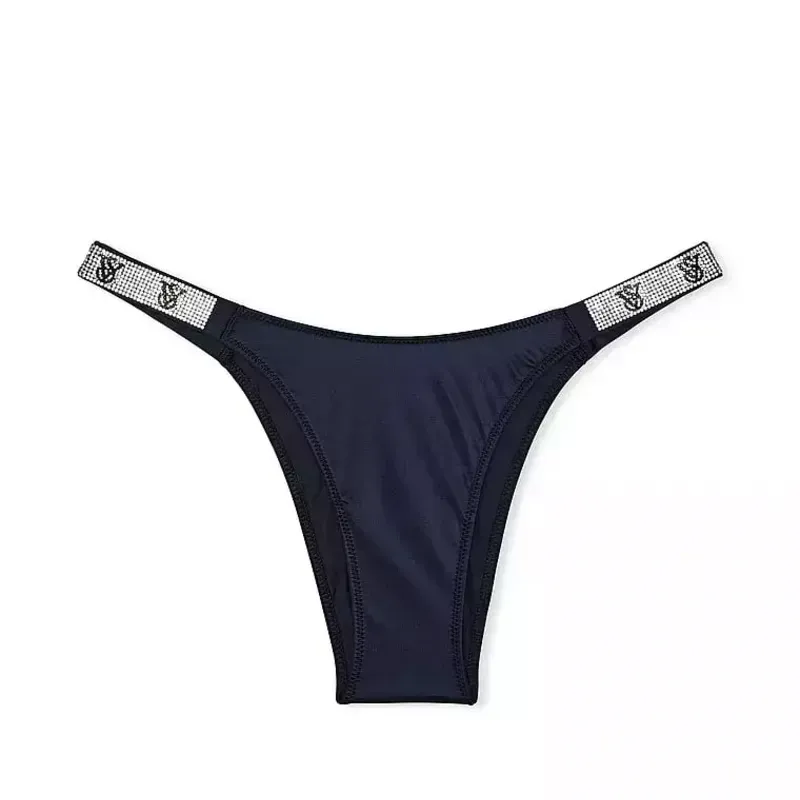 Descubre una braga sexy y sedosa con una pierna favorecedora y de corte alto y las famosas correas brillantes con el logotipo del monograma para un acabado deslumbrante.