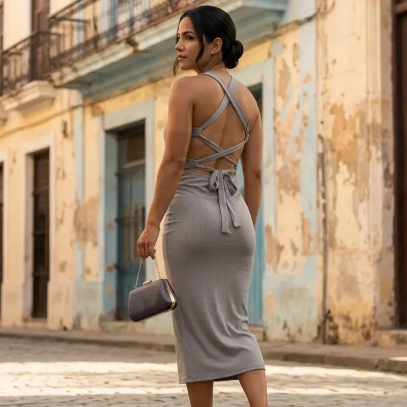Tejido rib Largo medio Cruzado en espalda