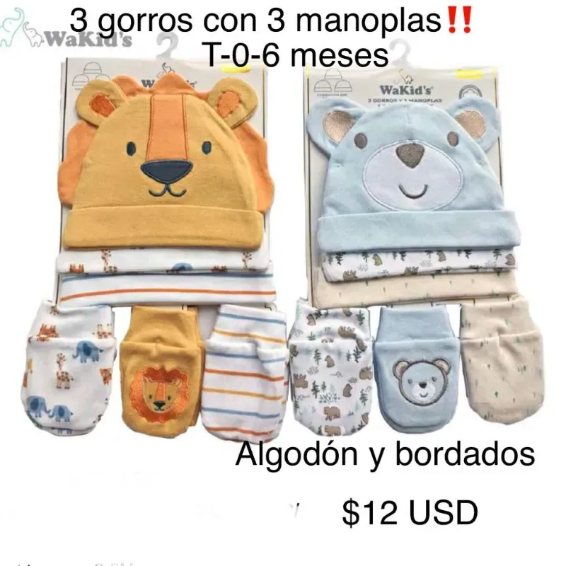 Juego de 3 gorros con 3 manoplas