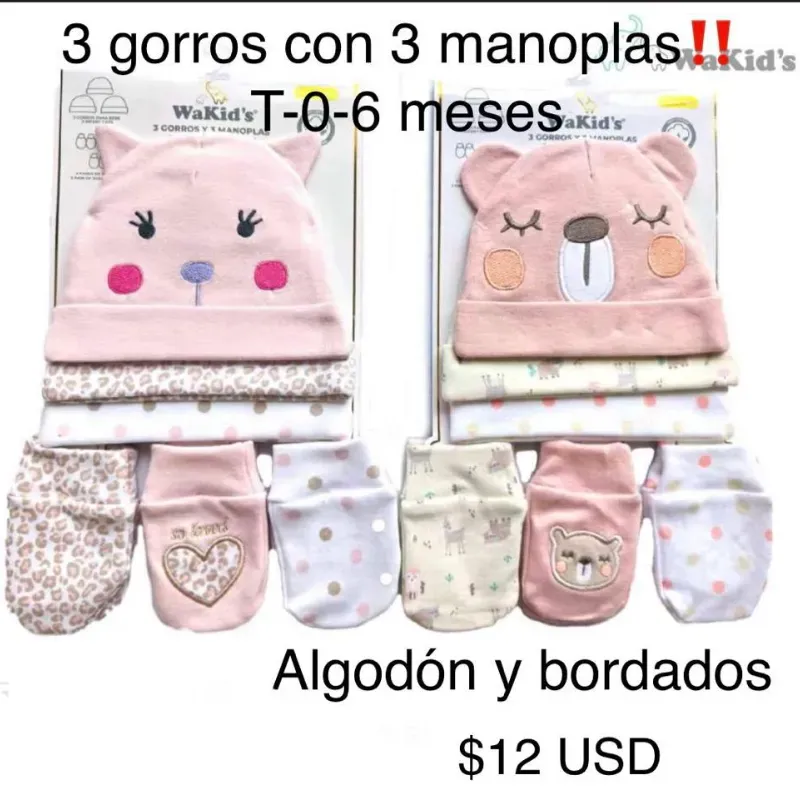 3 gorros con 3 manoplas para hembra