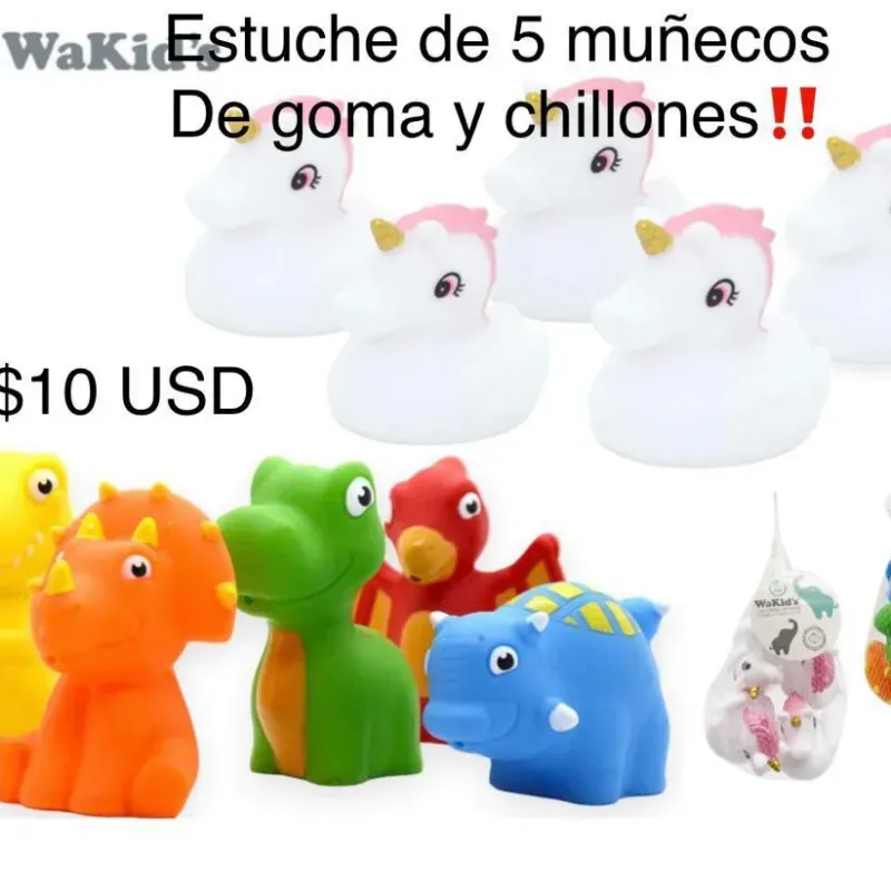 Estuche de 5 muñecos de goma para el baño y para rascar las encías