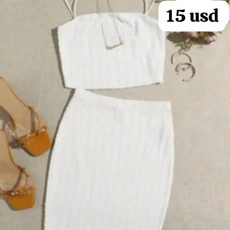Conjunto blanco de blusa corta y saya corta