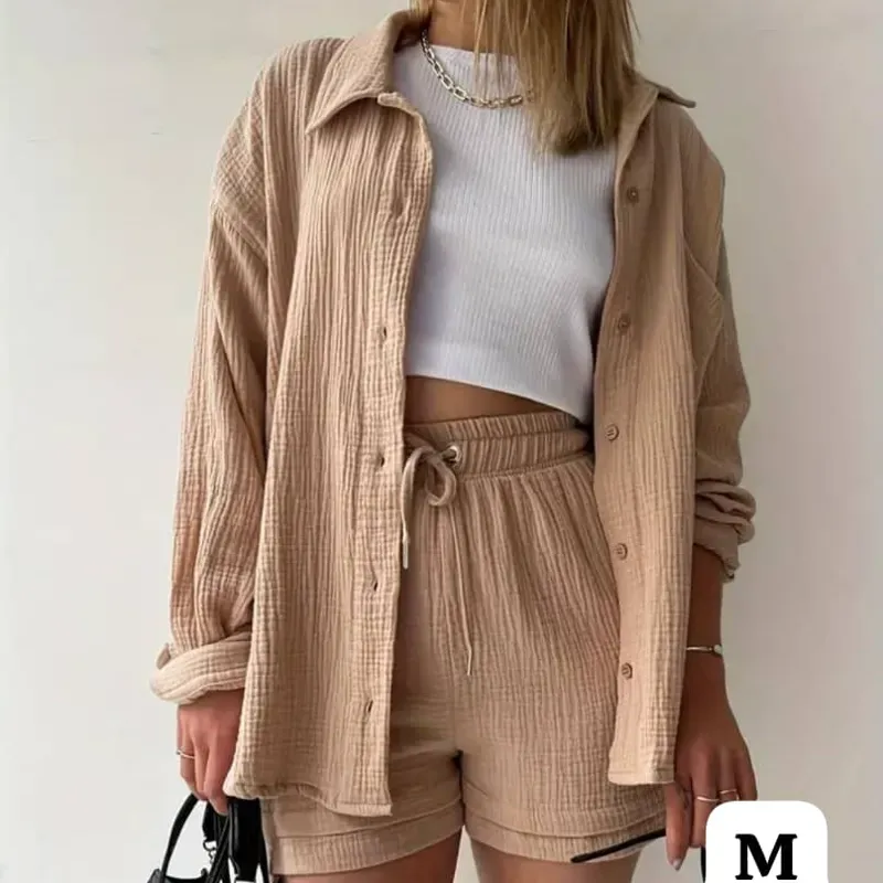 Conjunto de camisa y chort beige