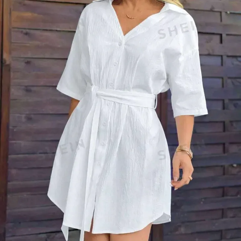 Vestido blanco mangas 3/4