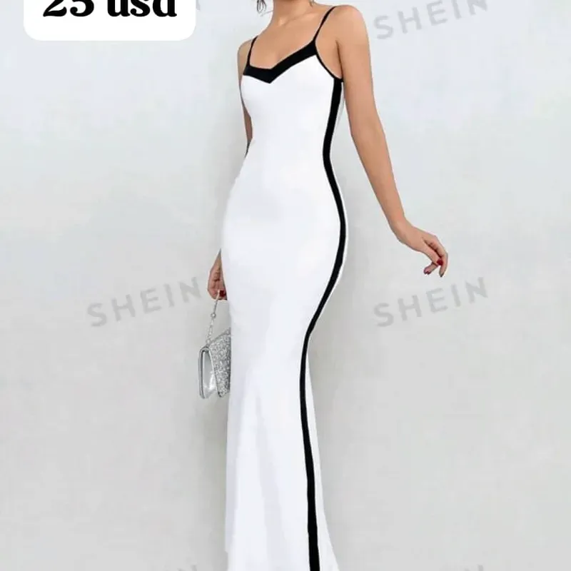 Vestido largo blanco con diseño en negro