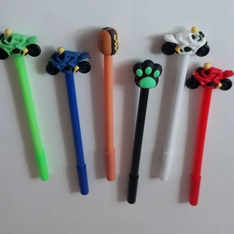 Boligrafo punta fina, tipo centropen, tinta negra, con adorno de moto, huella de perro o hotdog
