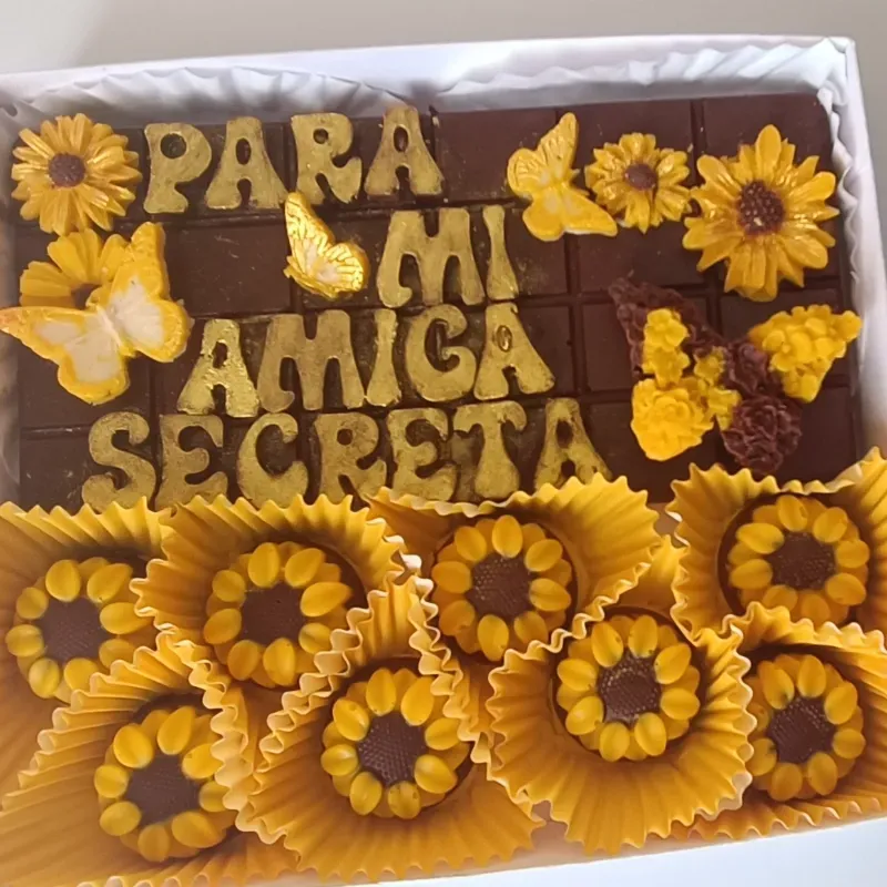 Tableta de chocolate con mensaje y bombones combinados