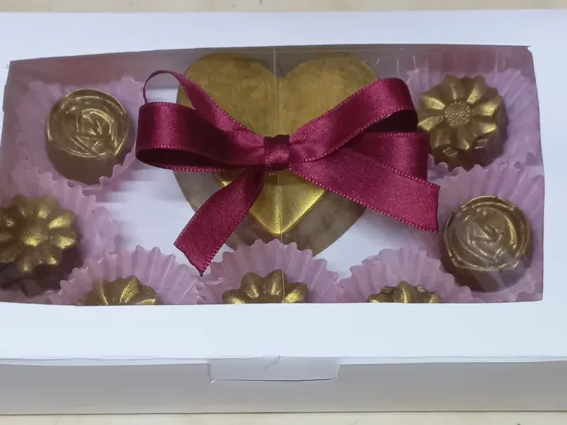 12 bombones en elegante caja con lazo.